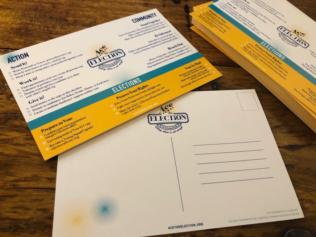 We need to make sure that our friends, our neighbors and fellow Americans not only get out there and vote, but have their RIGHT to vote protected. How can we do that? Each and every organization on the ACE checklist is here to guide you to take action. Whether it’s writing 100 postcards to encourage fellow voters, calling your member of Congress to pass voter protection legislation, tossing a few bucks to Biden or another candidate, or posting a lawn sign in your front yard, we can’t stress it enough: Every. Bit. Helps.